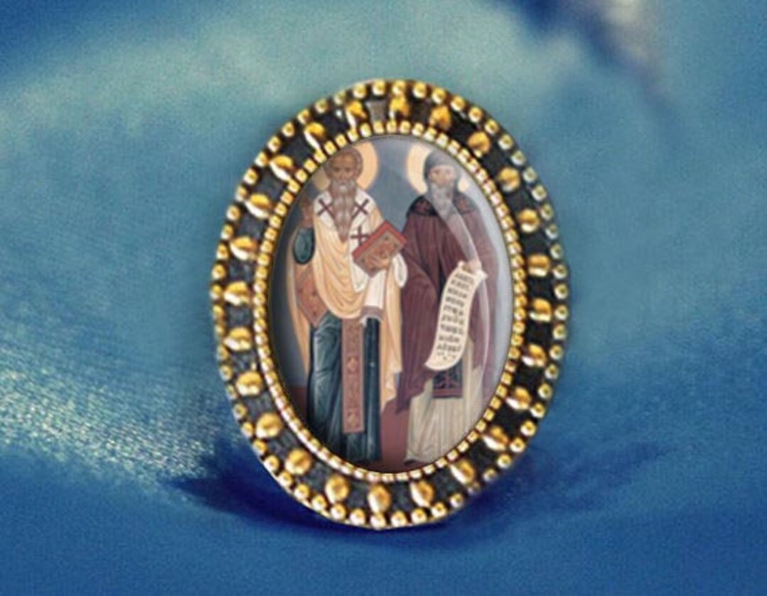 Saint Cyril And Methodius Antique Gold Religious Pin Patron Etsy New Zealand